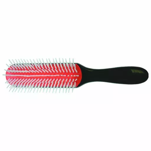 Traditional styling brush. 7-row styling brush with firm nylon bristle. Removable anti-static heat resistant rubber pad for comfort eand easy cleaning. Contoured handle provides maximum control for ease of use. Recommended for medium to long length hair. Multi purpose brush that can be used for grooming, blow-drying and styling.